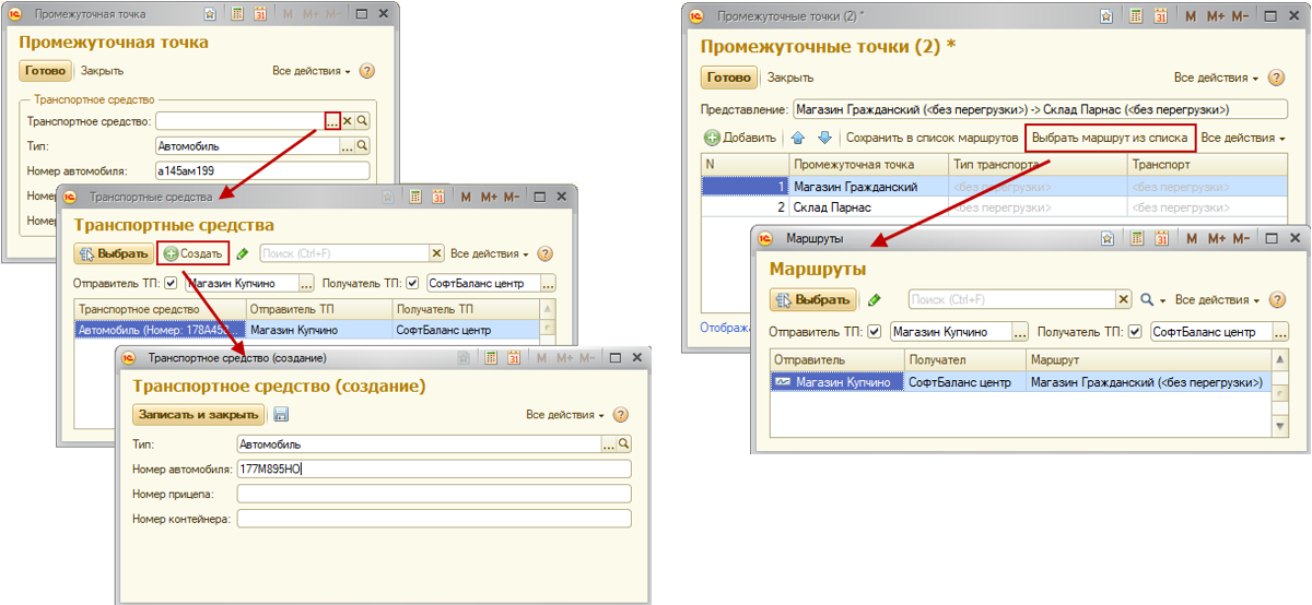Транспортные средства и маршруты можно сохранять для дальнейшего быстрого подбора в документ.